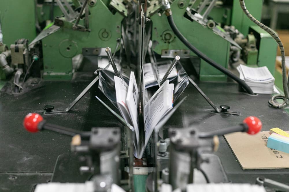 ページ折(単行本用折り加工)はもちろんですが、パンフレットやチラシの加工も行います。