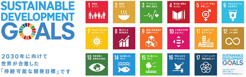 「SDGs(エスディージーズ)」とは、「Sustainable Development Goals(持続可能な開発目標)」の略称であり、2015年9月に国連で開かれたサミットの中で世界のリーダーによって決められた、国際社会の共通目標です。「17の目標」と「169のターゲット(具体目標)」で構成されています。